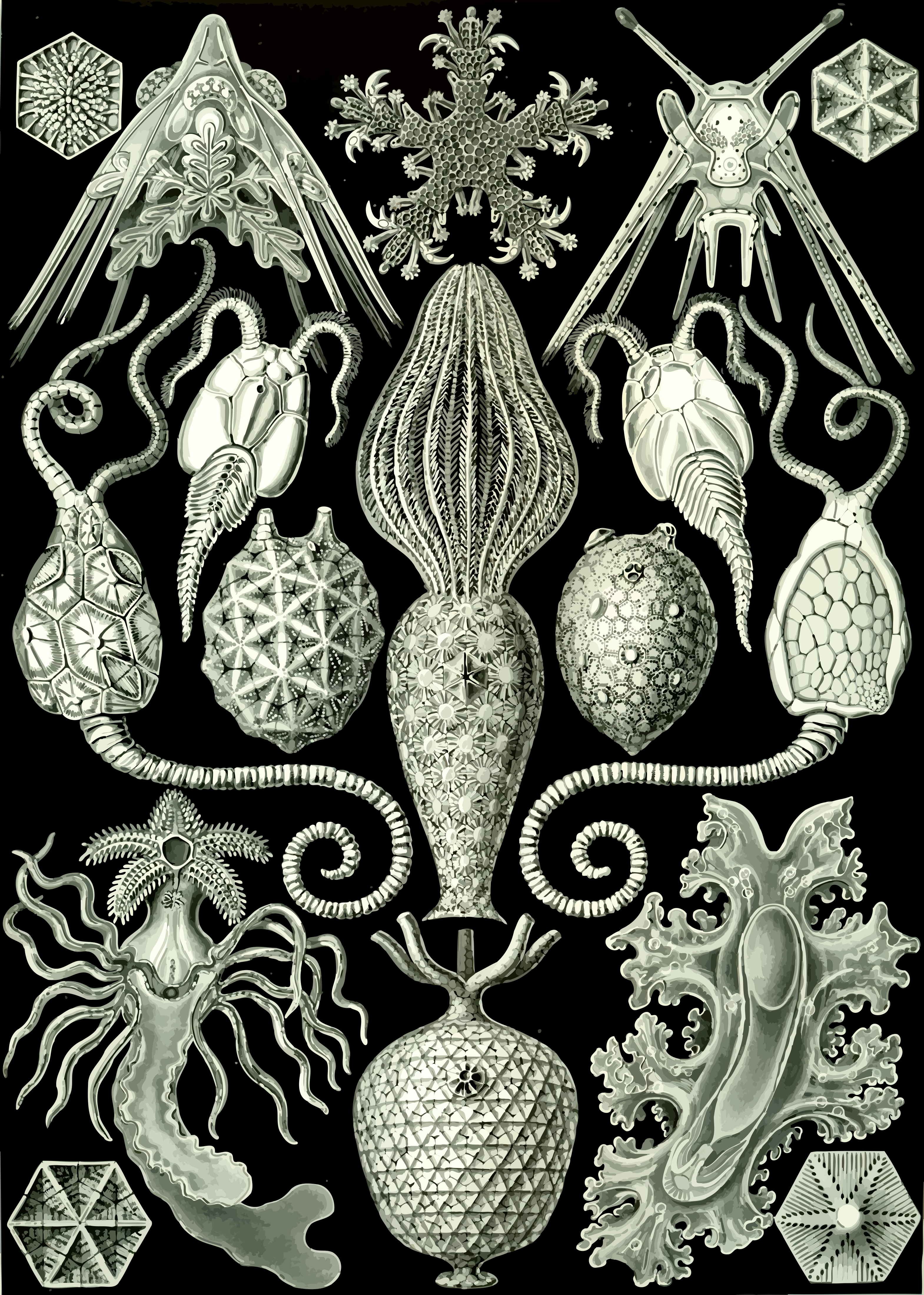 Haeckel Amphoridea SVG has a transparent background. This SVG has a resolution of 2355x3301. You can download the SVG for free in the best resolution and use it for design and other purposes. Haeckel Amphoridea SVG just click on Download and save.